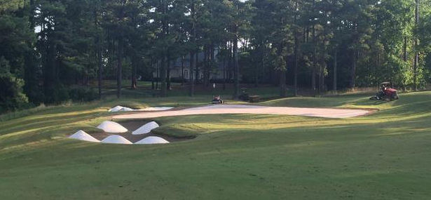Under the direction of architects Bob and Bobby Cup, certified Better Billy Bunker installer TDI International, converted the existing bent grass greens to TifEagle Bermuda and renovated approximately 60 percent of the cart paths. In addition to the new putting surfaces and design features, all bunkers were constructed using the Better Billy Bunker Method. Bulk Aggregate's "Pro-Angle" bunker sand was chosen to compliment the new bunker system.